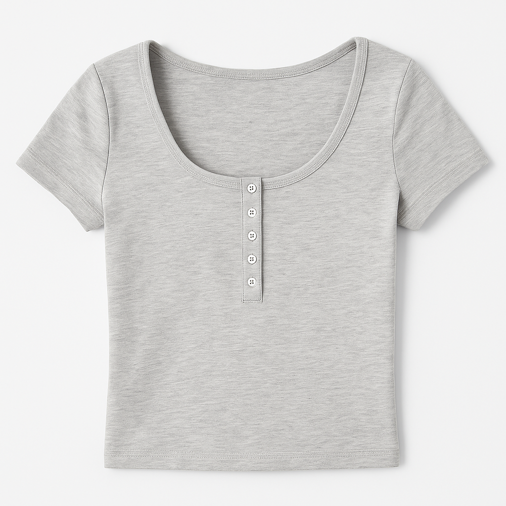 [036]GM Hot Girl Slim U-Neck Right Shoulder Short-Sleeved T-Shirt for Women 2025 New Summer Design Pure Cotton Small White Top