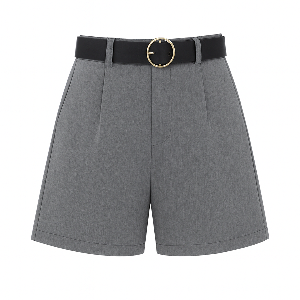 [061]MS Women's 2025 Summer New Loose High Waist Slimming Casual Black A-Line Wide-Leg Five-Inch Inseam Suit Shorts
