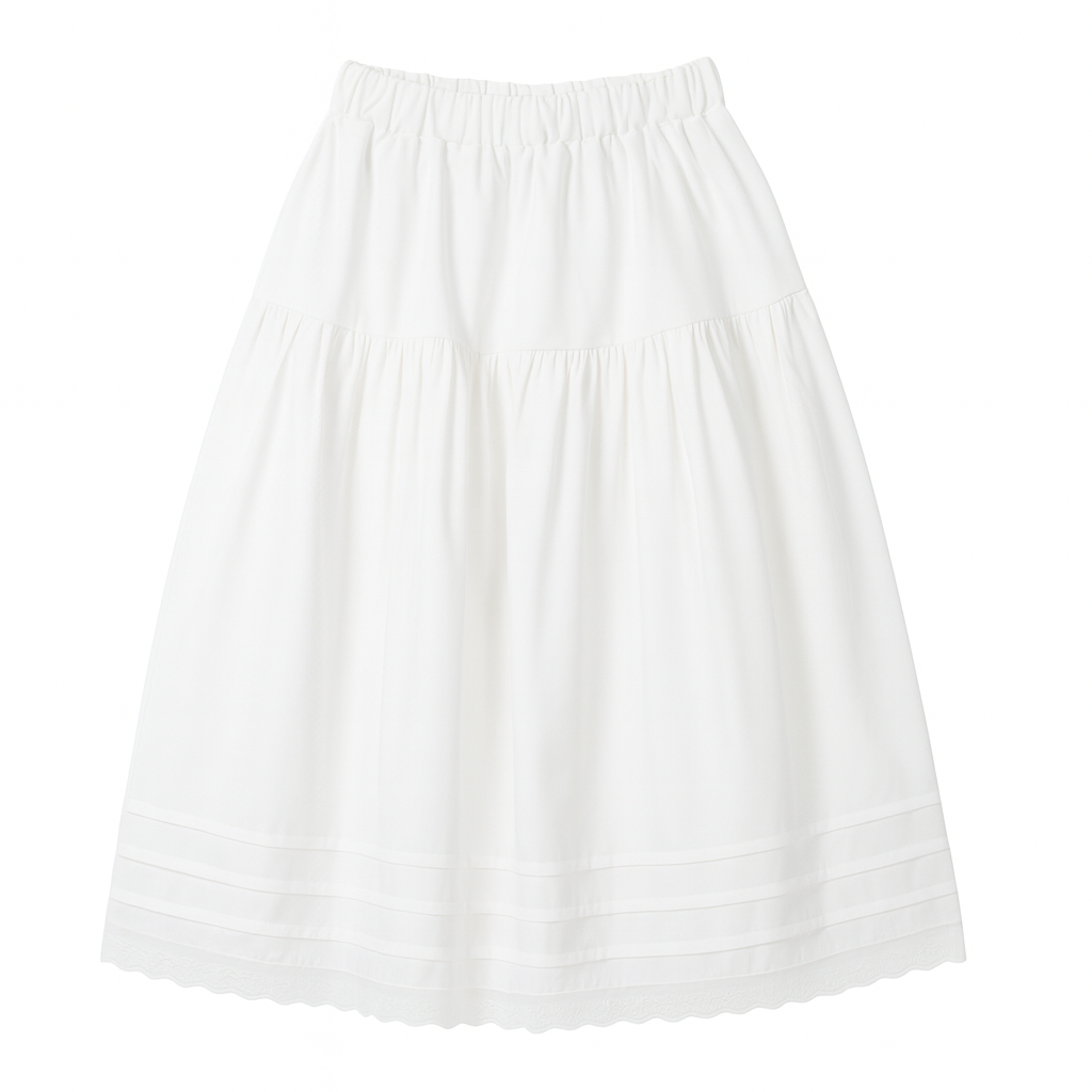 [081]GM Elegant High-Waisted Mid-Length Lace Trim White Skirt, Spring/Summer 2025 New Collection from Dongdaemun, South Korea