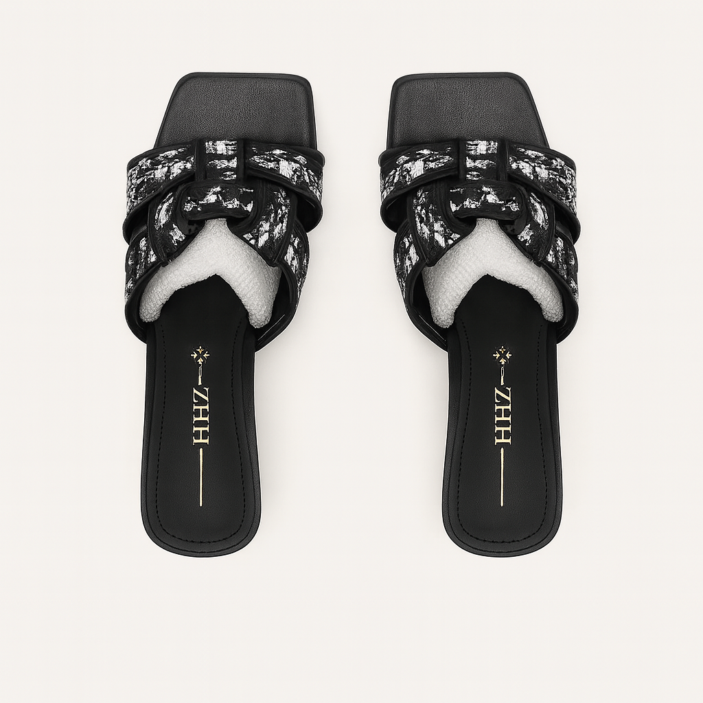 [152]NM Women's Chanel-style Large Size Sandals 41-43 Extra Wide and Thick for Broad Feet Elegant Slippers Summer Outdoor Wear Traditional Chinese Style One-strap