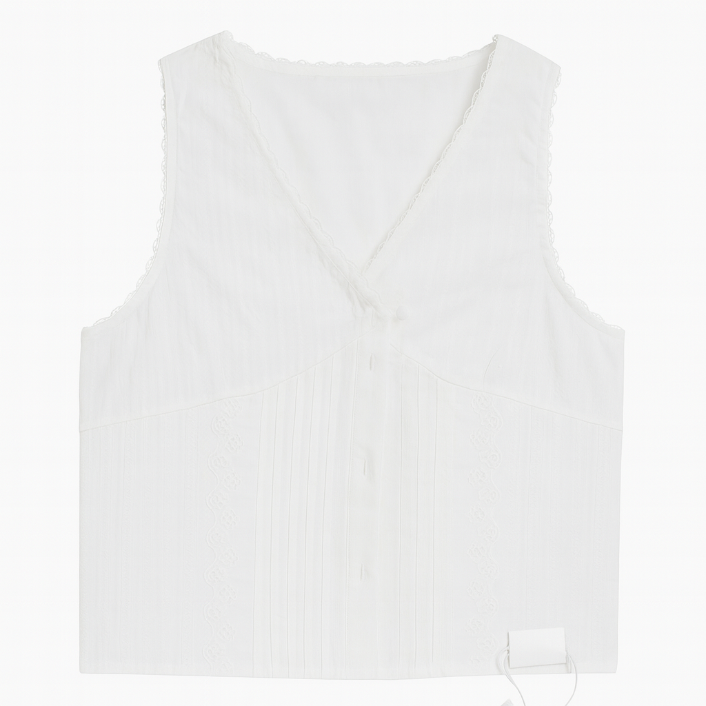 [189]MM French White Lace Trim Sleeveless Vest for Women Summer Slimming Sexy Style V-Neck Short-Length Top