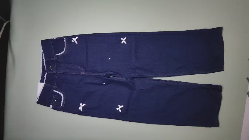 [202]GM Women's Spring Slimming Wide-leg Jeans with Korean Vintage Lace Waist Seam