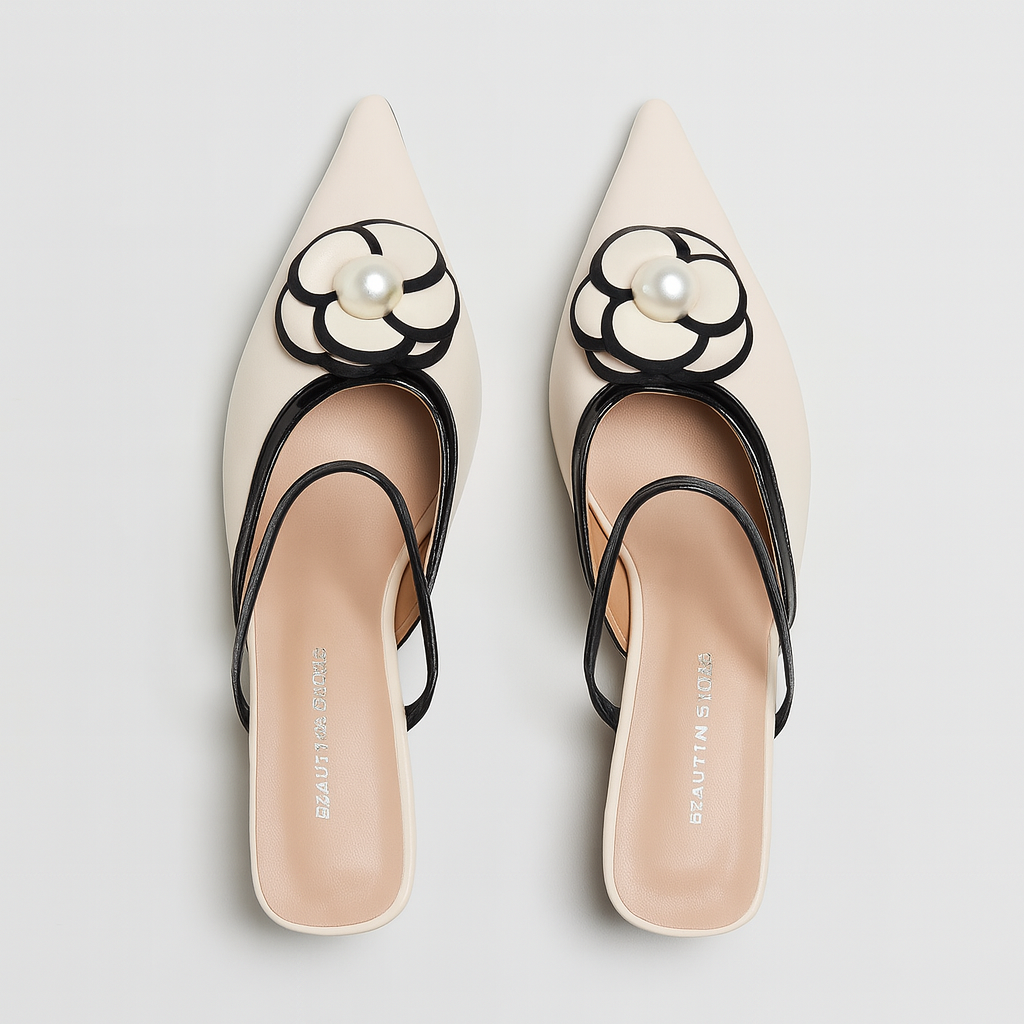 [225]NM Chanel-style Camellia High Heels 2025 New Collection French Toe Semi-Slipper Women's Summer Outdoor Pointed Toe Sandals