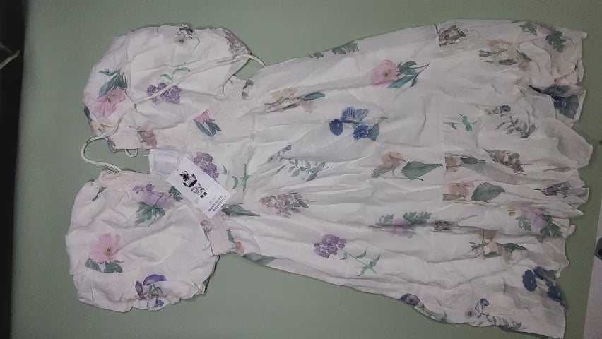 [235]GM Plus Size Resort Style Super Stylish Soft Style Dress Summer Elegant Socialite Puffed Sleeves Loose V-Neck Floral Print Dress