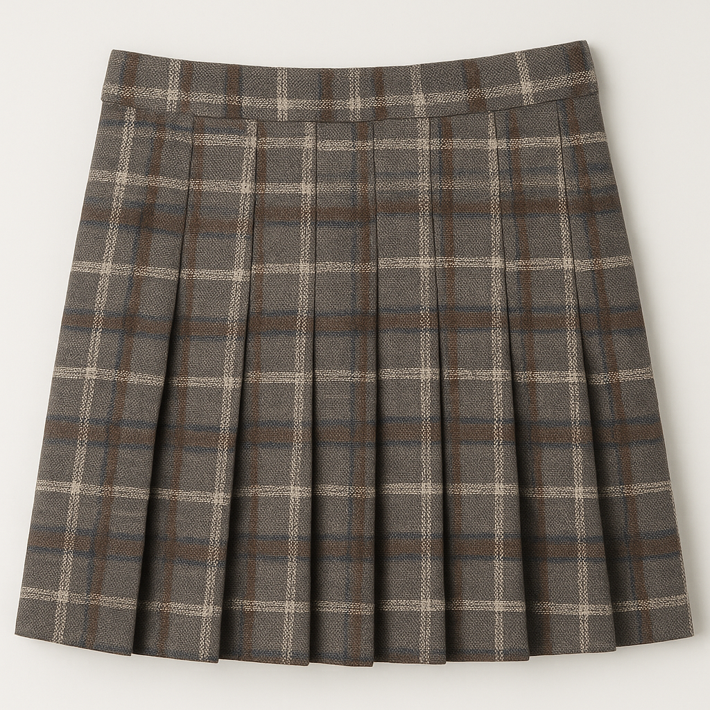 [242]MS 2024 Autumn/Winter Plus Size Checkered Wool Pleated Skirt High Waist Slimming Body-Hugging A-Line Design