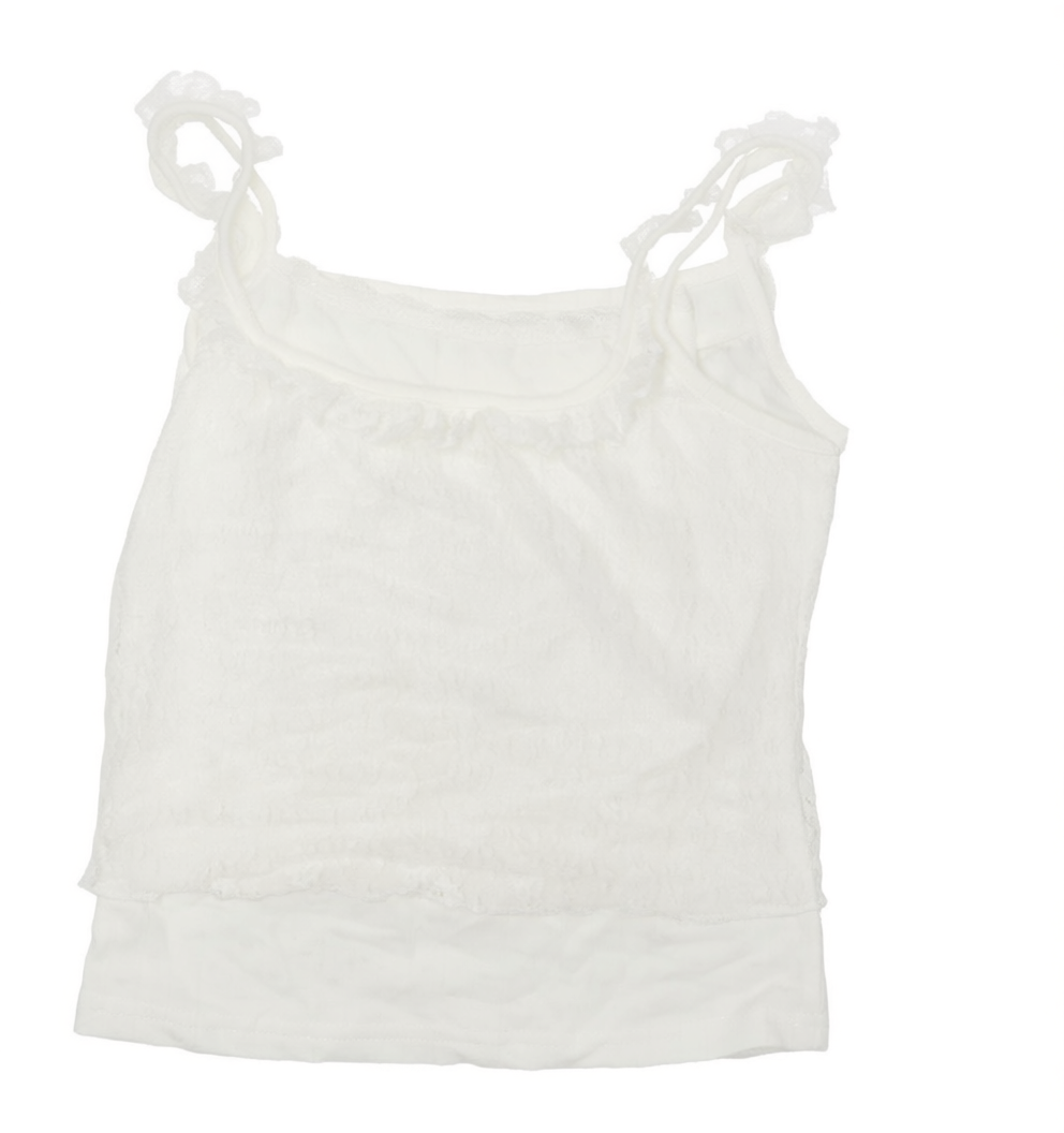 [281]GM White Sweet Bow Fake Two-Piece Small Camisole Women's Summer Slim-Fitting Pure Desire Short Top Worn Inside and Outside