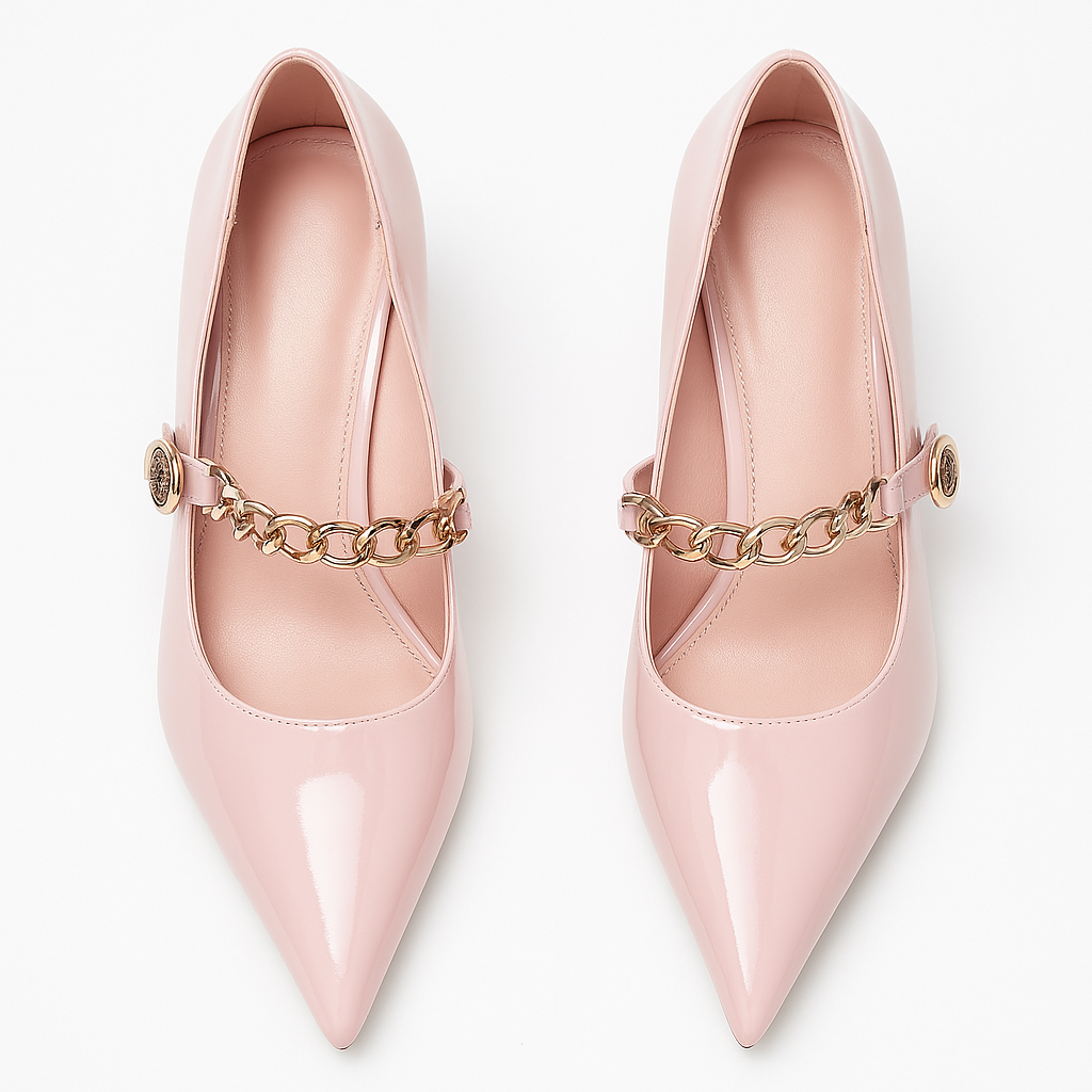 [284]GS Live Luxuriously Metal Chain Single Strap Wedge Heel Pointed Toe Mary Jane Platform Heel Genuine Leather Versatile Fashionable Women's Sneakers
