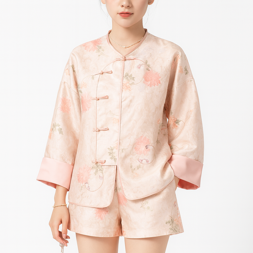 [311M] New Chinese Style Women's Petite 2024 Summer New Arrival Chinese Button Placket Vest and Shorts Two-Piece Set