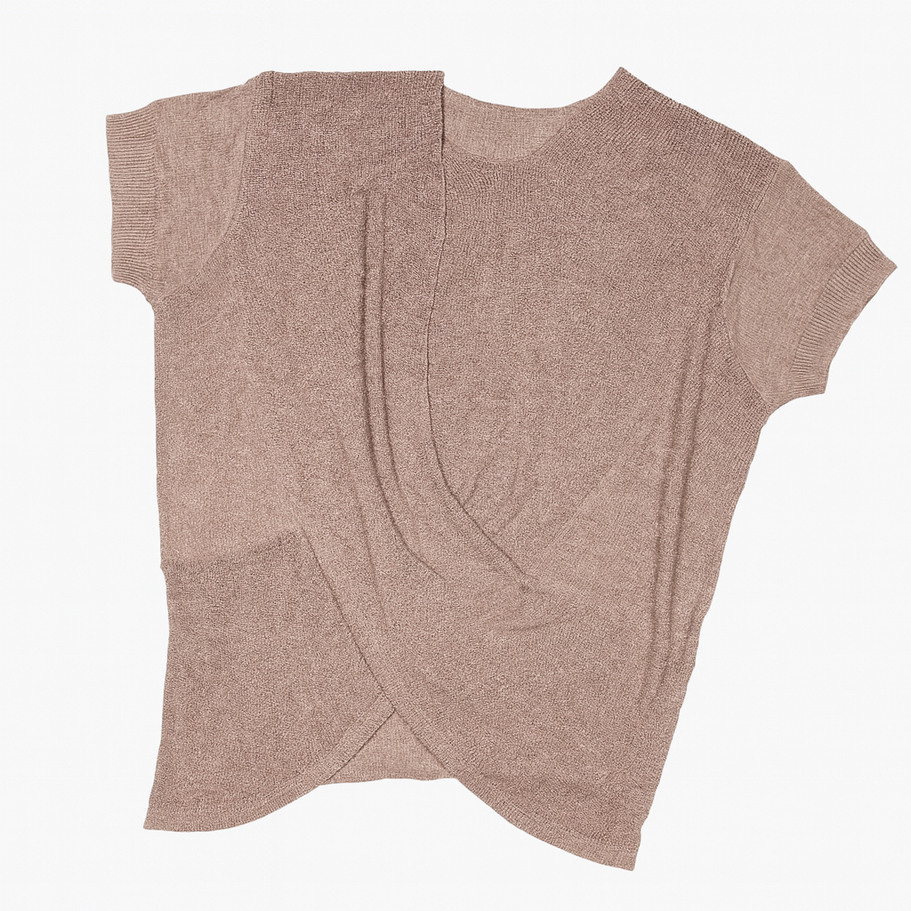 [366]MM Oversized Plus Size Asymmetrical Short Sleeve Knit Top for Women, Medium-Length Summer Lightweight Fashion Slimming