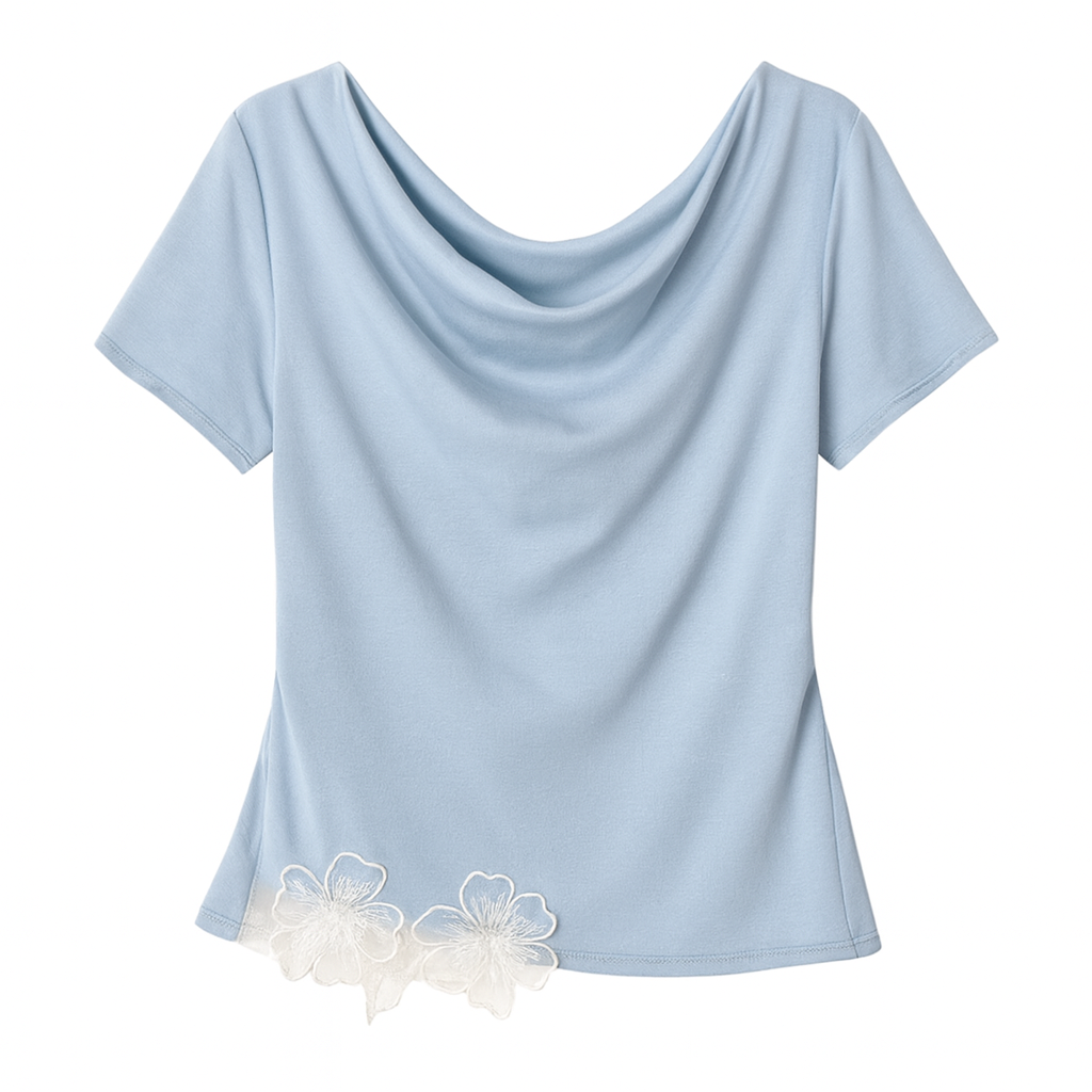 [367]MS Lu Xiangnan "Milk Blue Puff" Blue Loose T-shirt Summer New Arrival Designer-style Collar Women's Top