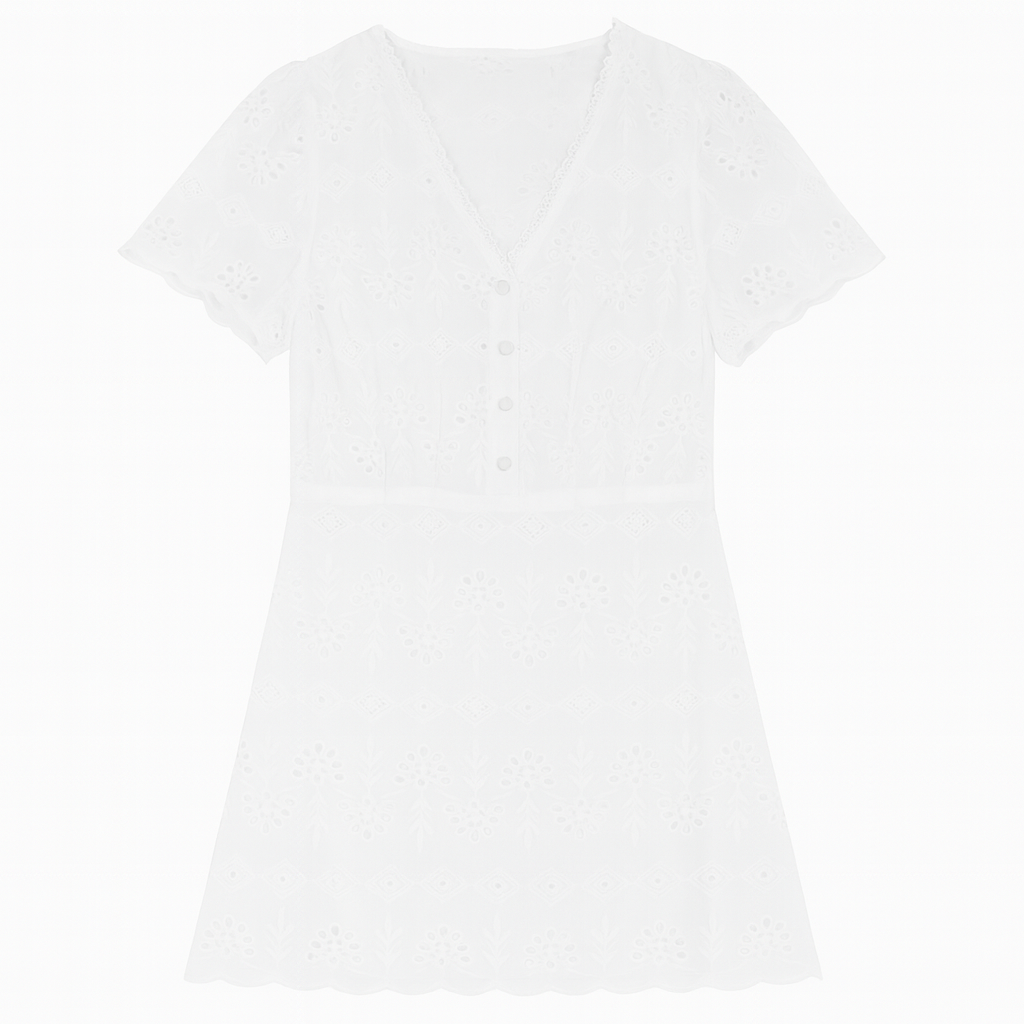 [370]GS ¡¾Clearance¡¿NAZ Nazi Plus Size Summer French Slimming Puff Sleeves Lace Embroidery Plus Size V-Neck Dress