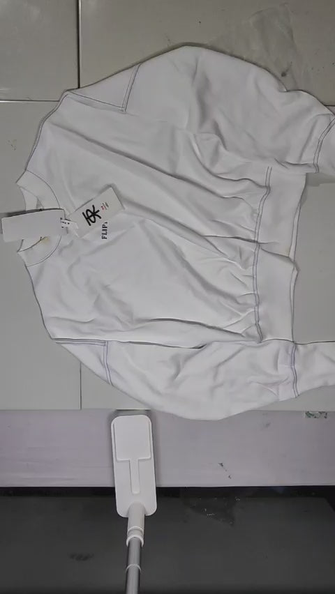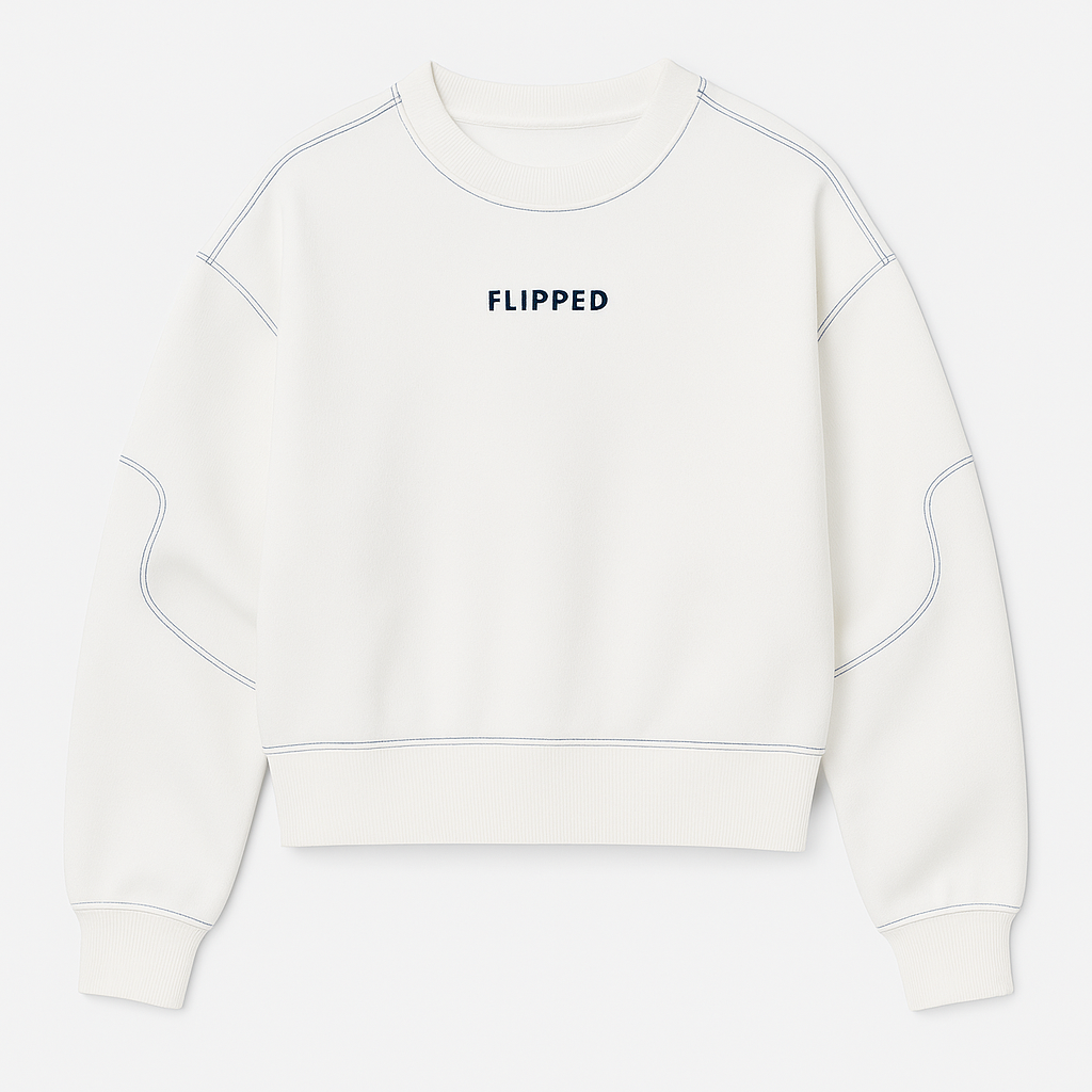 [423]MS Short-length visible stitch lettering drop shoulder tailored waist top trendy Instagram style white round neck loose fit hoodie women's spring and autumn collection