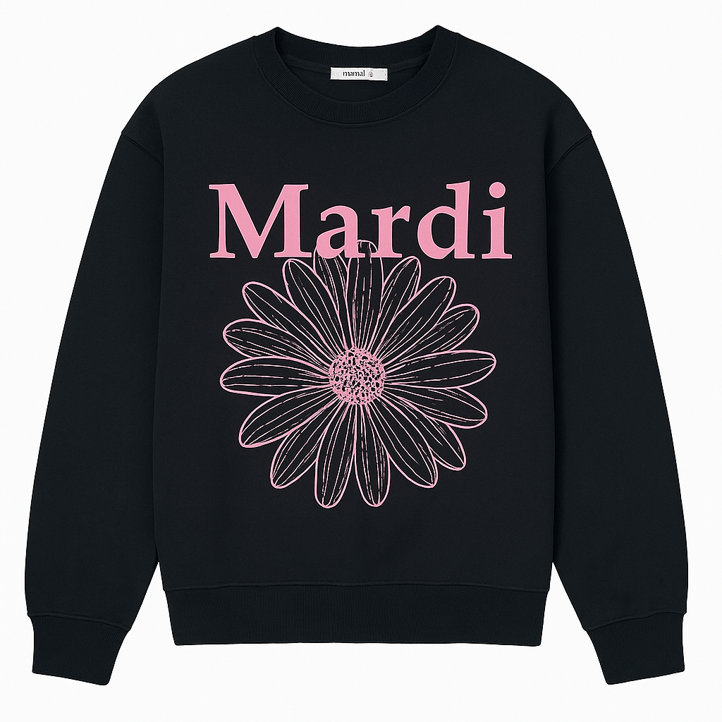 [443]MS Mardi2025 Spring and Autumn Gold and Silver Color Coordinating Loose Cotton Sweatshirt with Small Daisy Embroidery Print Round Neck Long Sleeves Women's