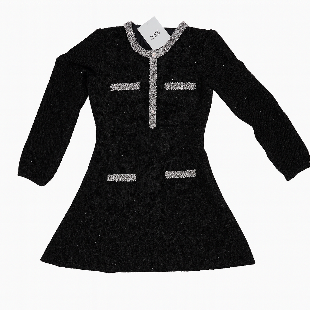 [445]MM Miu Miu Style Black Long Sleeve Knitted Sweater Dress with Exquisite Craftsmanship French Chanel-style
