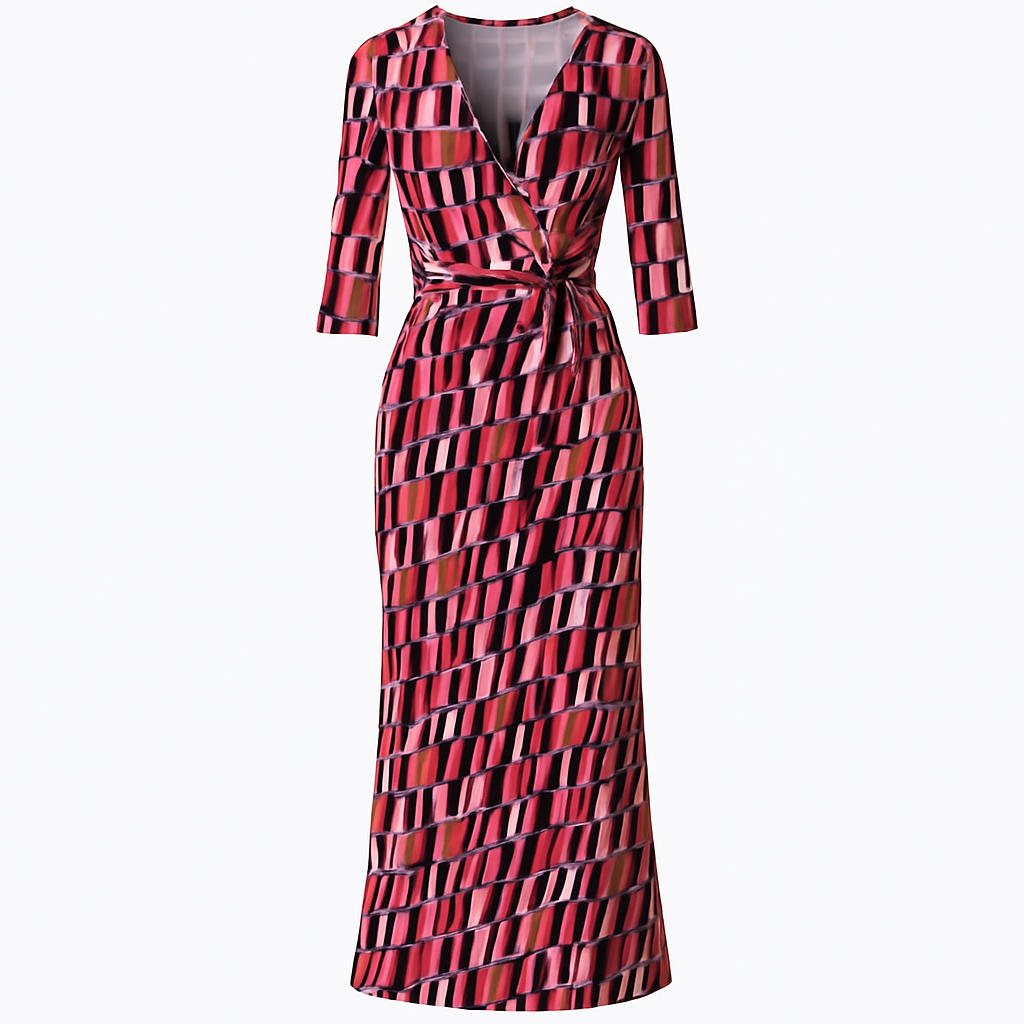 Color Classification: Pink Brown Geometric Twists Slimming Dress; Size: M[101~110jin]; [ 1 JIN or 1 Catty = 0.5KG ]