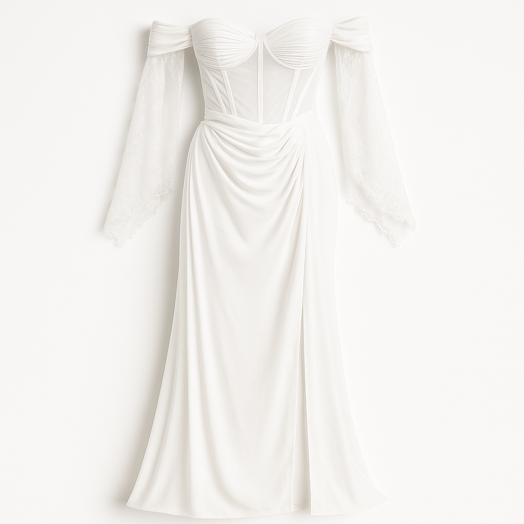 [470]GM Annie Plus Size Semi-Transparent Fishbone Chiffon Goddess Train Dress for Slightly Plump Women, New Style with Silver Ring Kiss Marks and Elegant Style
