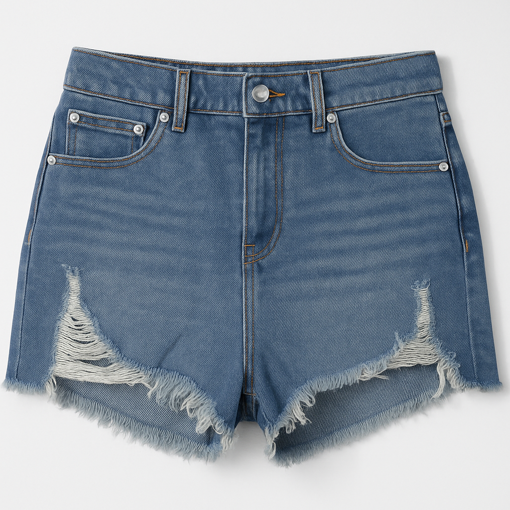 [485]GS EU/US Big Brand Denim Mini Shorts for Girls, 2024 Summer HyunA Style A-line High Waist Slimming Frayed Edges Trendy Hot Pants