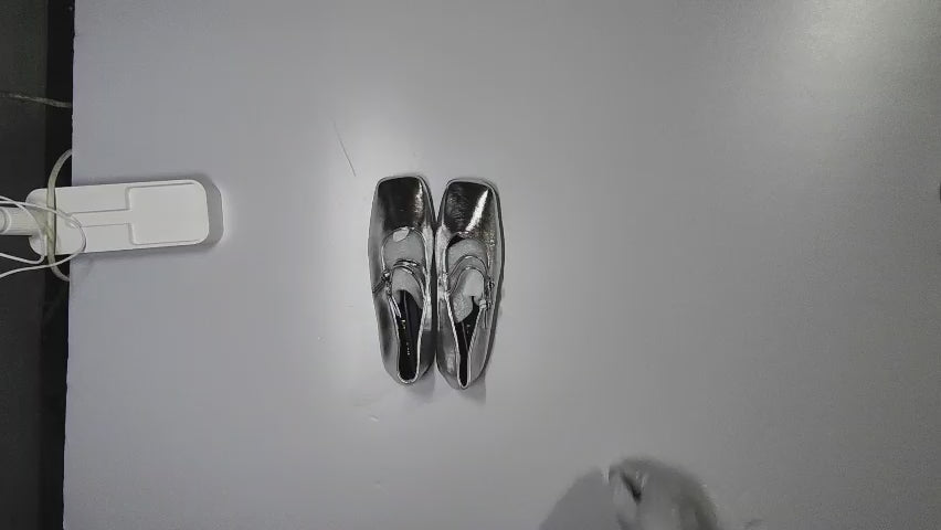 [493]NM Women's Genuine Leather Cross-Strap Open Toe Flat Ballet Shoes Vintage French Silver Mary Jane Shoes