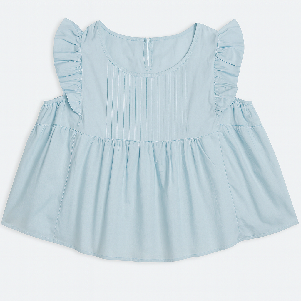 [510]MM Guangzhou Thirteen Rows Best-selling Women's Clothing Bargain Hunt ~ Ruffled Cap Sleeves Pleated Shirt for Women Summer Designer Unique