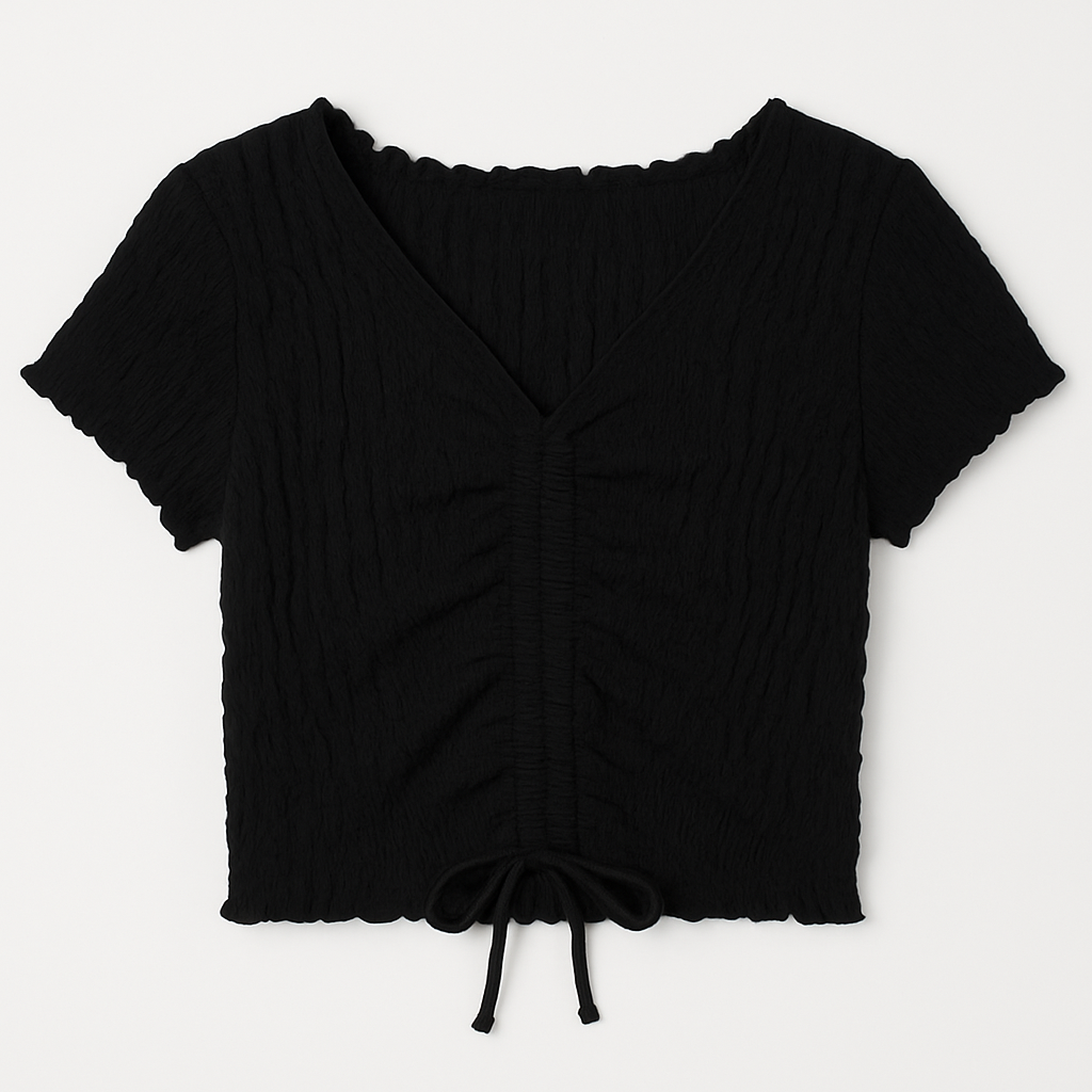 [514]MS [Promotional Price] Women's Short-Sleeve T-Shirt Summer Lightweight Ice Silk Knit Top Exposed Collarbone Ruffled Edges Tie-Up Short Top Paired with High-Waist Pants