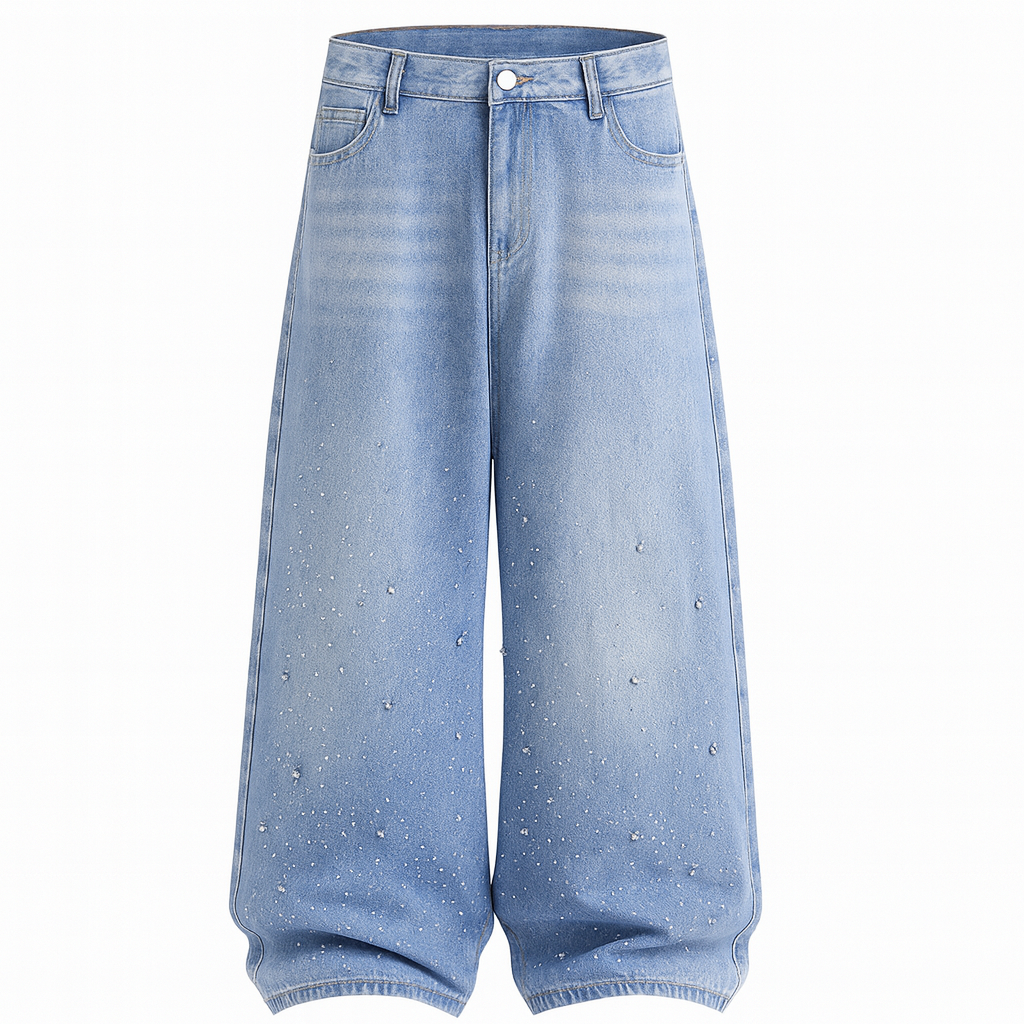 [524]GM OWNVIEW [Brilliant Starry Night] Custom Design Style Unisex Slimming Low Waist Loose Fit Jeans