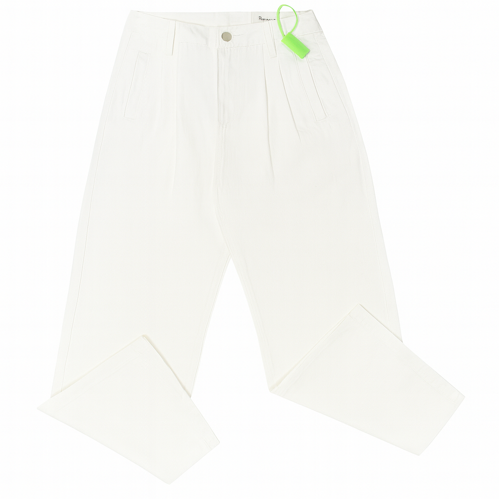 [531]GM Promotional Price Textured Women's White Denim Pants Summer New Arrival High-Waisted Loose Slimming Straight-Leg Pants with Designer Pleated Wide-Leg