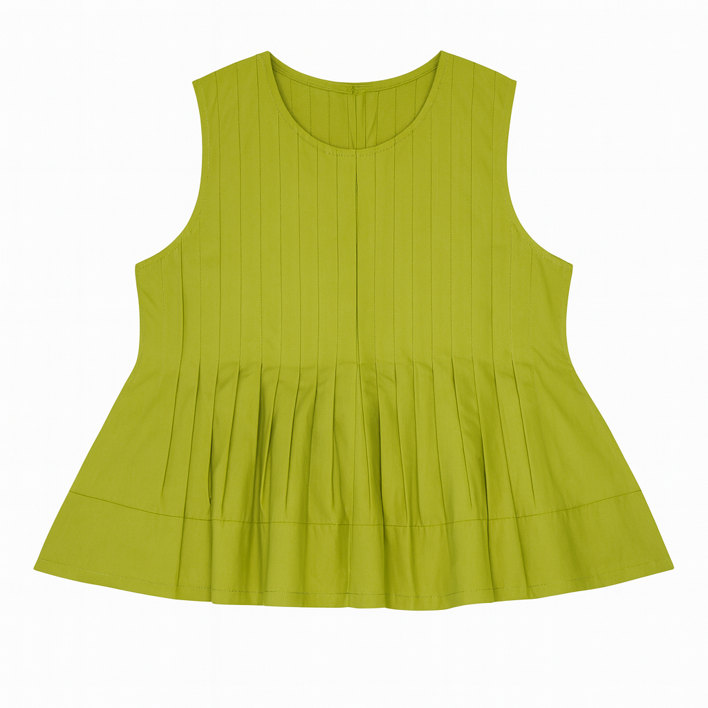 [545]GM BoYu Green Designer Stylish Sleeveless Pleated Baby Doll Top Slimming Waist Summer New Round Neck Top