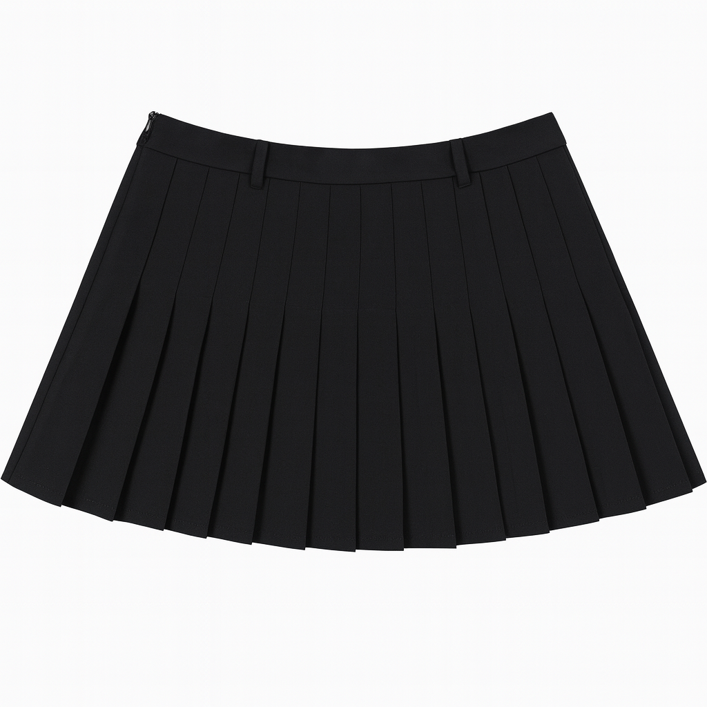 [589]GM Julu Studio "Trendy Pleats" Plus-Size Women's Classic Black Slimming A-Line Pleated Skirt Plus-Size Short Skirt