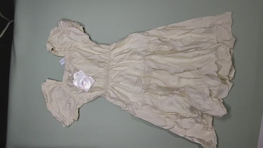 [628]GM 2024 Summer Women's Cream Yellow Puff Sleeve Dress with French Square Neckline Tailored Waist Elegant Slimming Long Dress