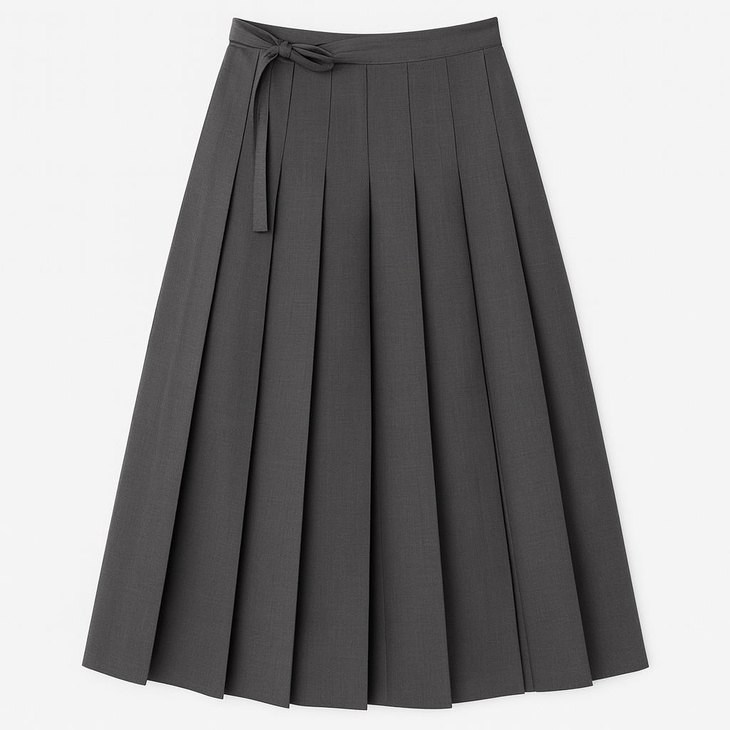 [637]GM [Promotion Price] Women's Xiangying Preppy Style Gray Pleated Skirt 2025 Summer New Arrival Elegant Mid-Length High-Waist A-Line Skirt