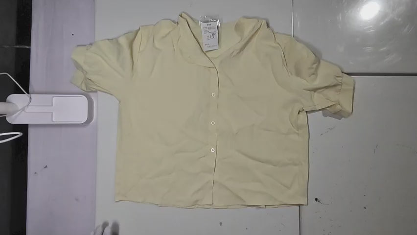 [658]GM White Women's 2025 Summer Short Sleeve Regular Shoulder Shirt Professional Office Wear Stand-Up Collar Half-Sleeve Blouse