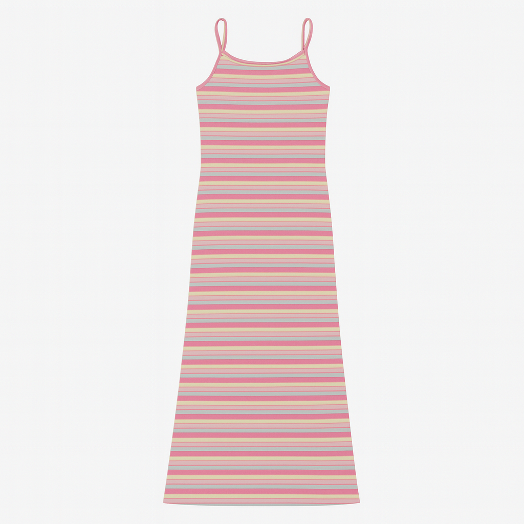 [715]GS Women's Summer Colorful Stripe Knit Strapless Bodycon Dress, French Style, Slimming, Trendy Short Dress