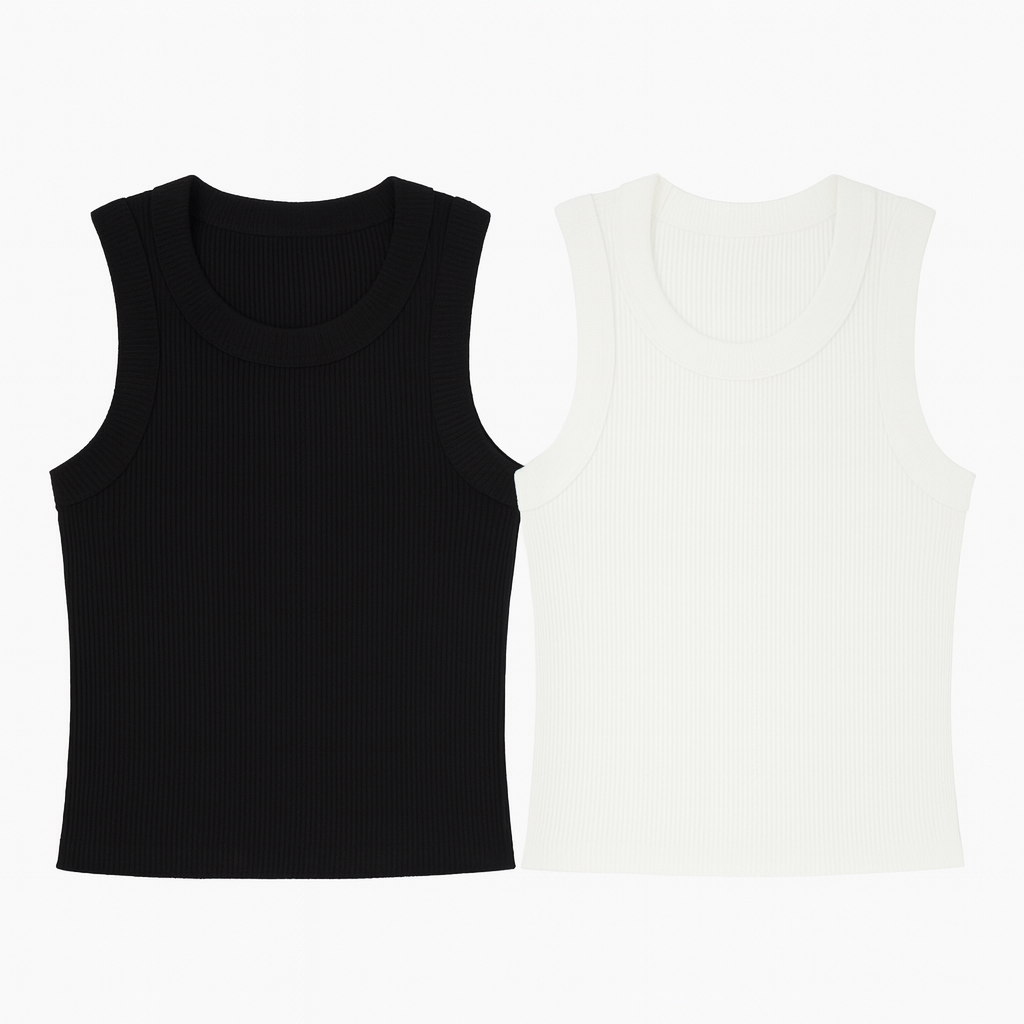 [718]MM Women's Summer Sleeveless Knit Tank Top with Design-Enhanced Texture, Trendy Girl Outfit, White Mini Halter Base Layer