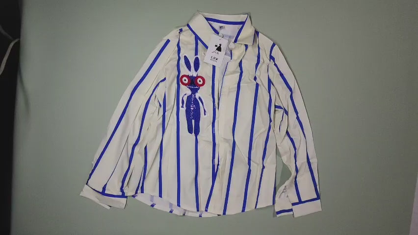 [779]GM Retro Cartoon Embroidery Stripe Women's Autumn/Winter Designer Niche Casual Loose Versatile Polo Shirt