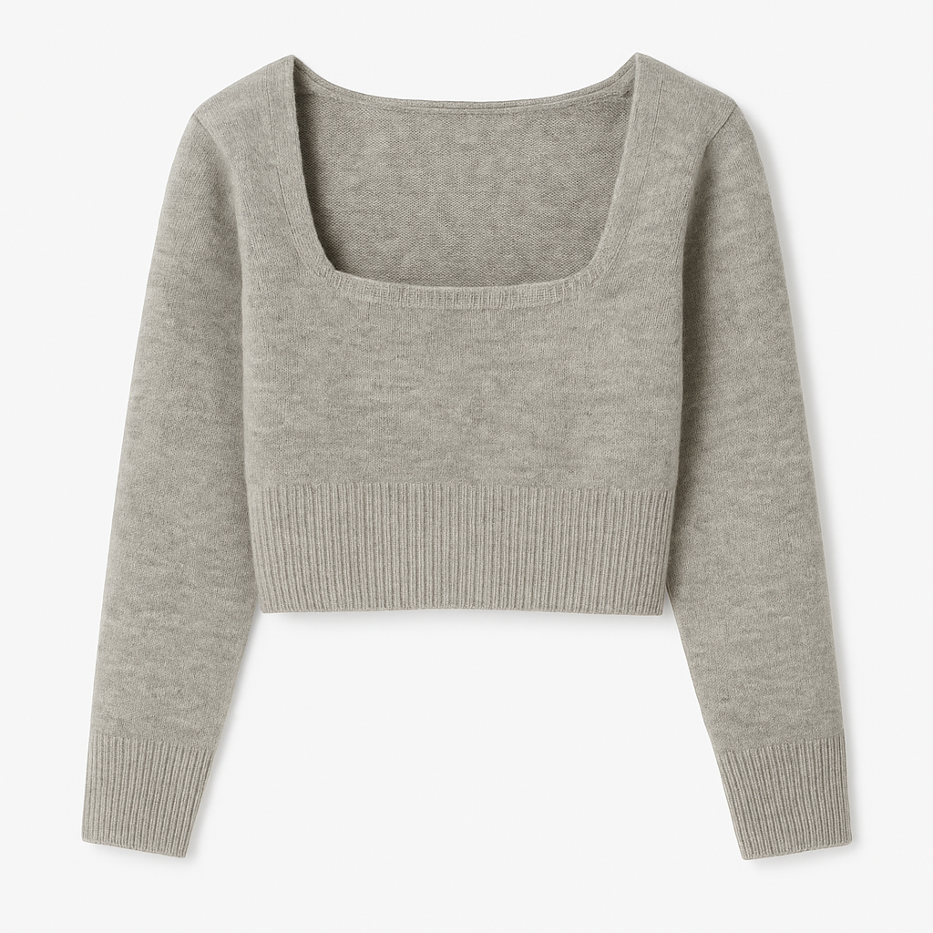 [781]MS Laxibei Women's 2024 Autumn New French Square Neck Knit Sweater Stylish Inner Layer Short Top