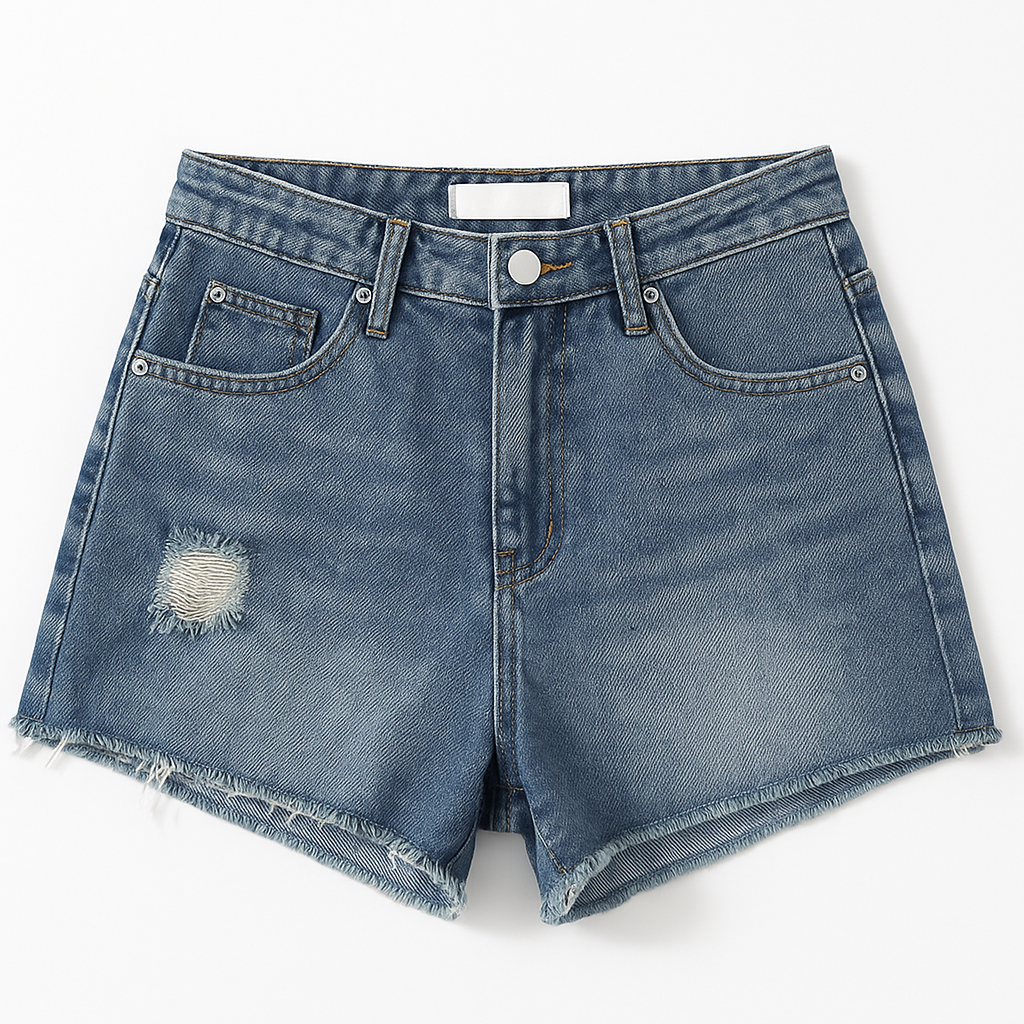 [807]MS Women's Summer Plus Size High-Waisted Slimming Ripped Denim Shorts with A-Line Wide Leg