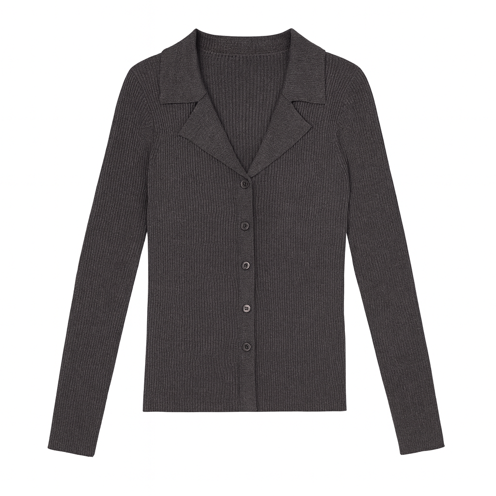 [817]MM Korean Vintage Polo Inner Layer Gray Knit Sweater Women's Autumn Winter New Design Cardigan Top