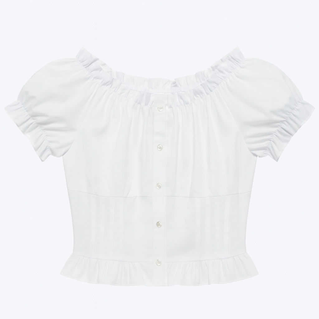 [819]MM Women's Summer French Ruffled Collar Short-Sleeve Shirt with Unique Design, Exclusive Charm, and Distinctive Puffed Sleeves - Short-Length Top