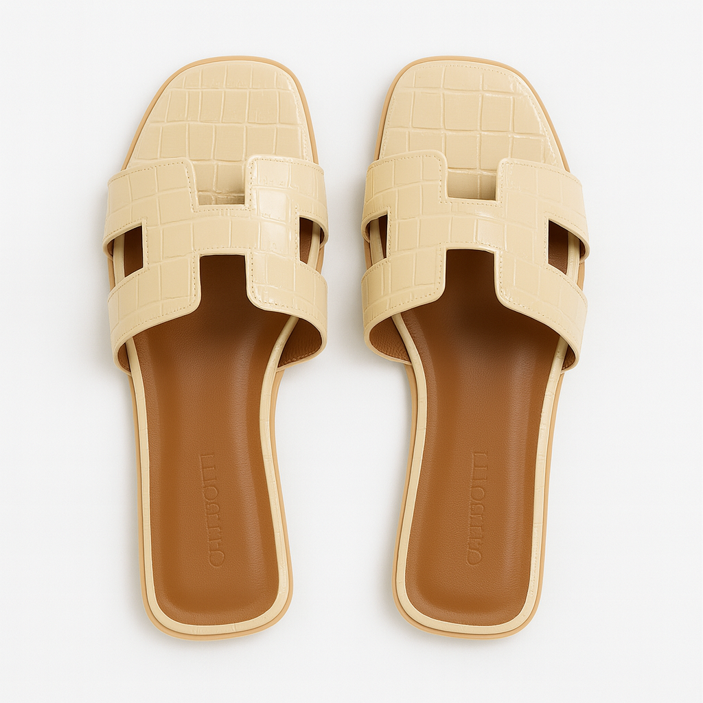 [836]JR Women's 2025 New Crocodile Embossed Sheepskin Flip-Flops Trendy Summer Beach Flat Slippers