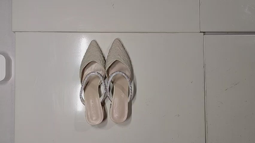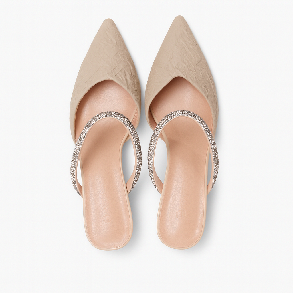 [891]NR Women's 2025 New French Vintage Thick Heel Closed Toe Diamond Pointed Toe Open Back Mary Jane Sandals Cool Slippers
