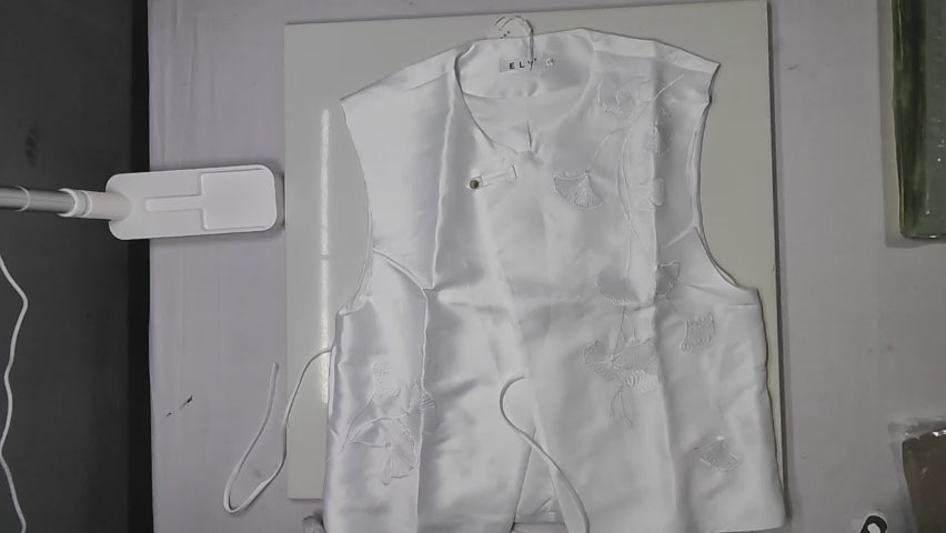 [901]GS New Chinese Style Round Neck Button Fastening Ginkgo Embroidery Vest Top Women's Spring 2025 Collection Very Stylish Vest Blouse