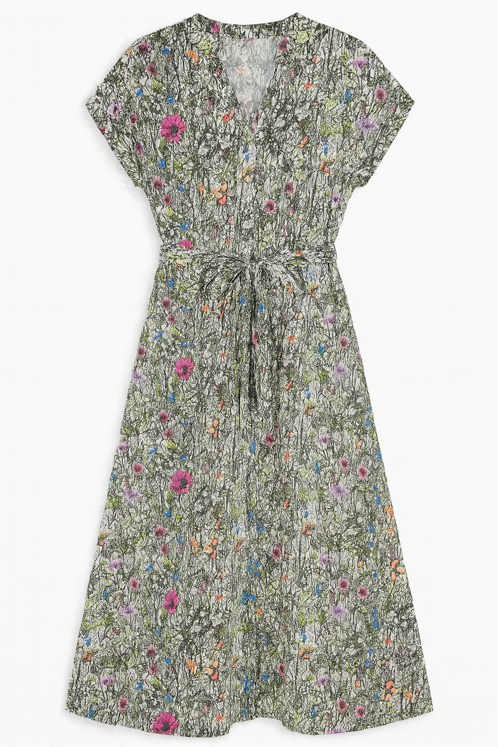 [910]GM Original Export Italian Women's Clothing Top Brand Cut Label Tie-Up Floral Print V-Neck Summer Dress Exported to France