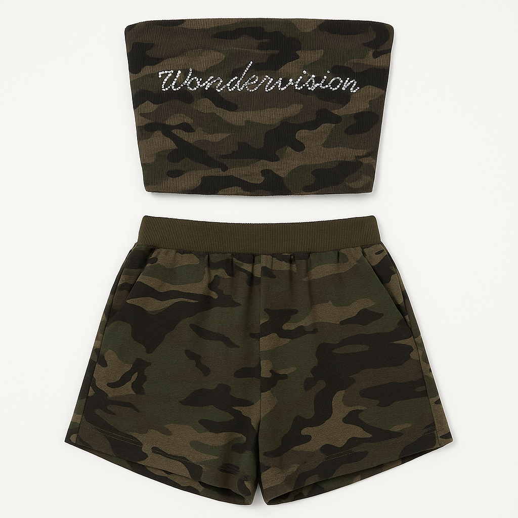 [922]MS Mo [In Stock] Rhinestone Stretch Camouflage Bodysuit, American Retro Sexy Backless Crop Top