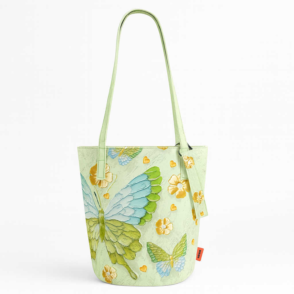 [972]NM Women's New Artistic Oil Painting Butterfly Illustration Shoulder Bag, Hand-Held, Crossbody Long Bucket Canvas Bag